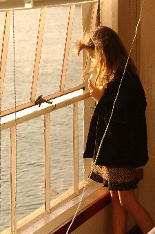 Calder gazes out the window; Brian and Pauline show off a spectacular sunset; David happily works the tables